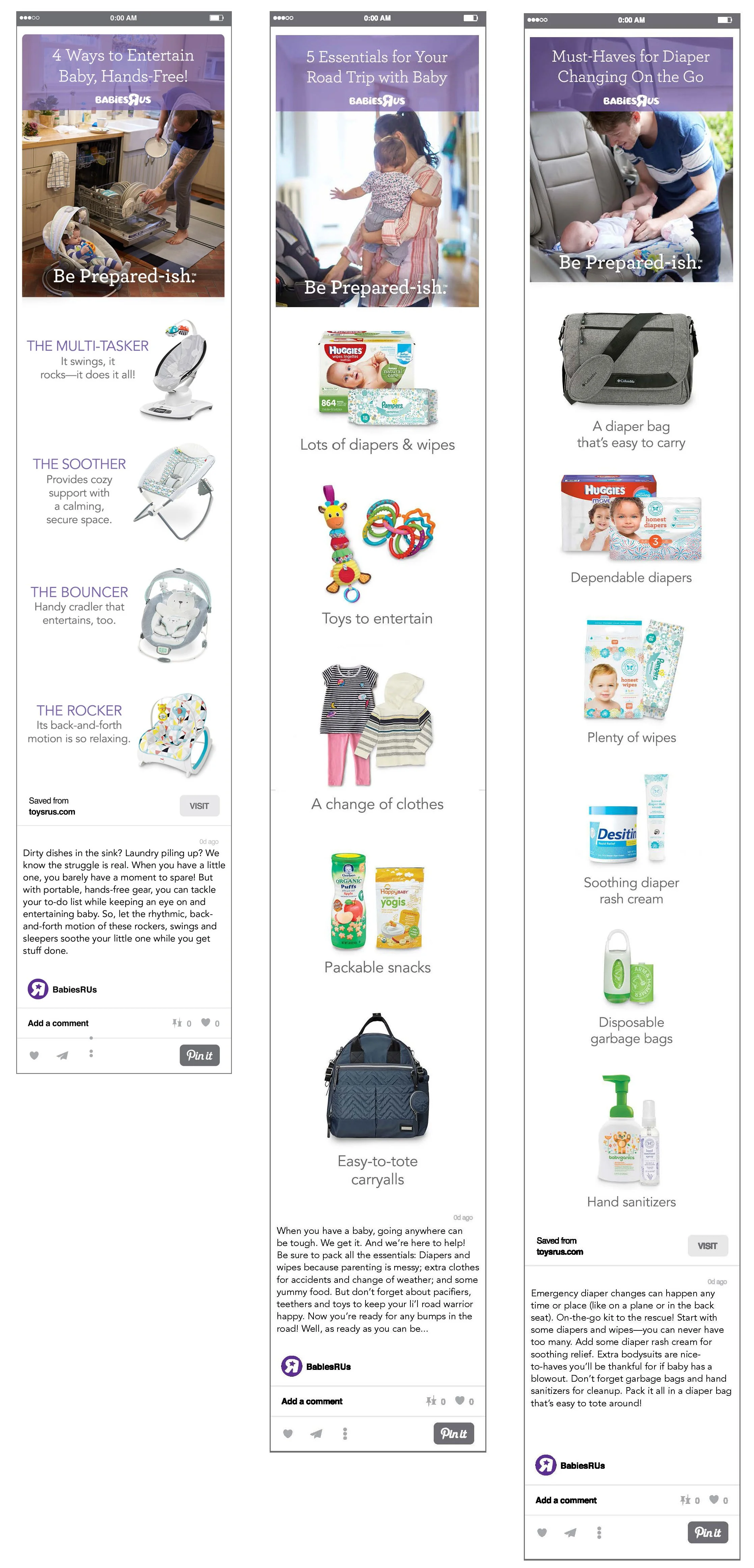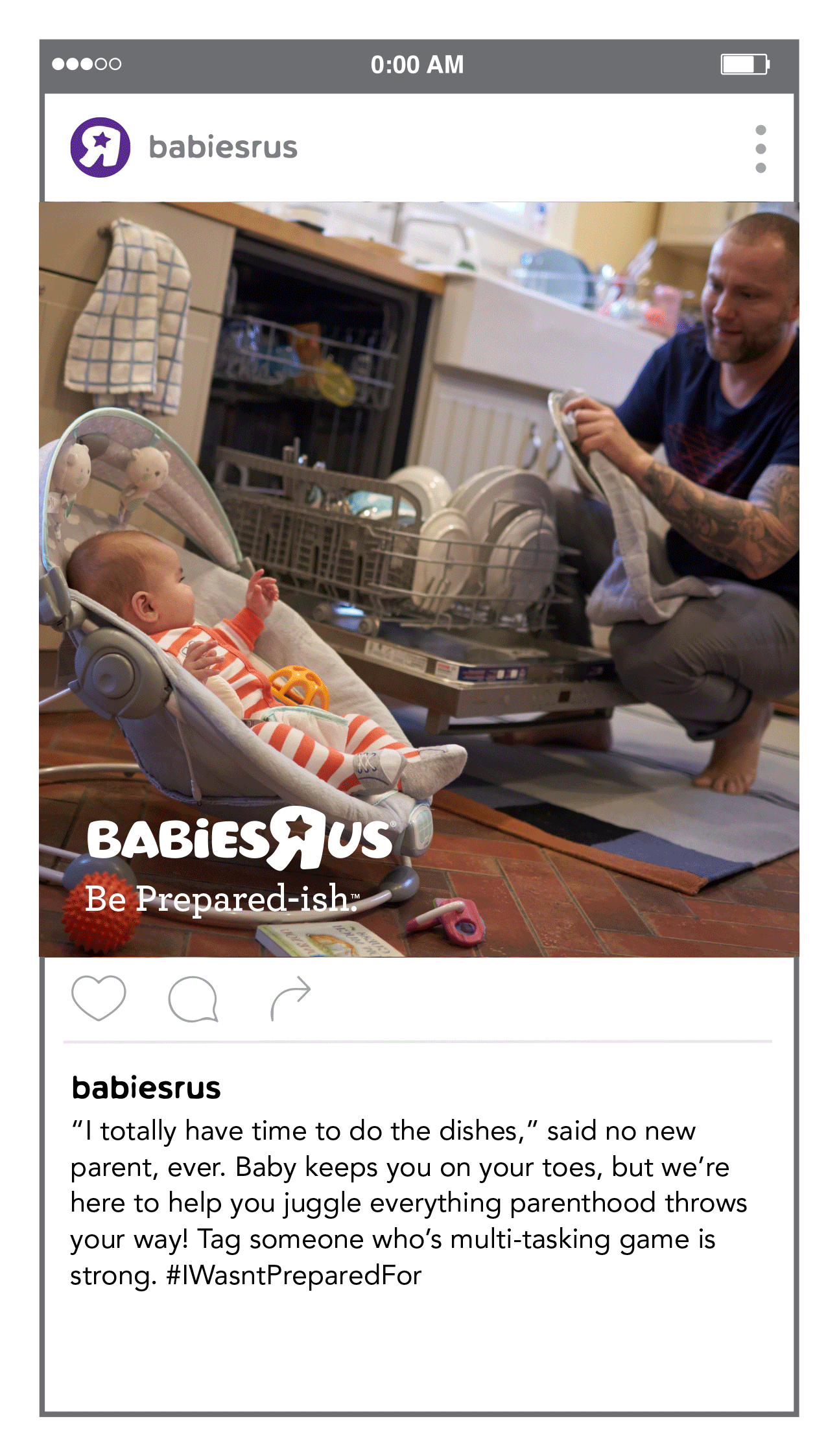 Solution: Babies“R”Us launch of the “Be Prepared-ish” rebranding campaign hinged on the insight that no parent is every really prepared for parenthood – but with Babies“R”Us, you can Be Prepared-ish. This campaign incorporated authentic - sometimes messy - lifestyle photography and relatable copy into Babies“R”Us’ everyday brand communication. Using a more social-minded and informal voice, Babies"R"Us brand promise ensured customers, "Don't worry! We've been there, seen that, and we can help you through it."